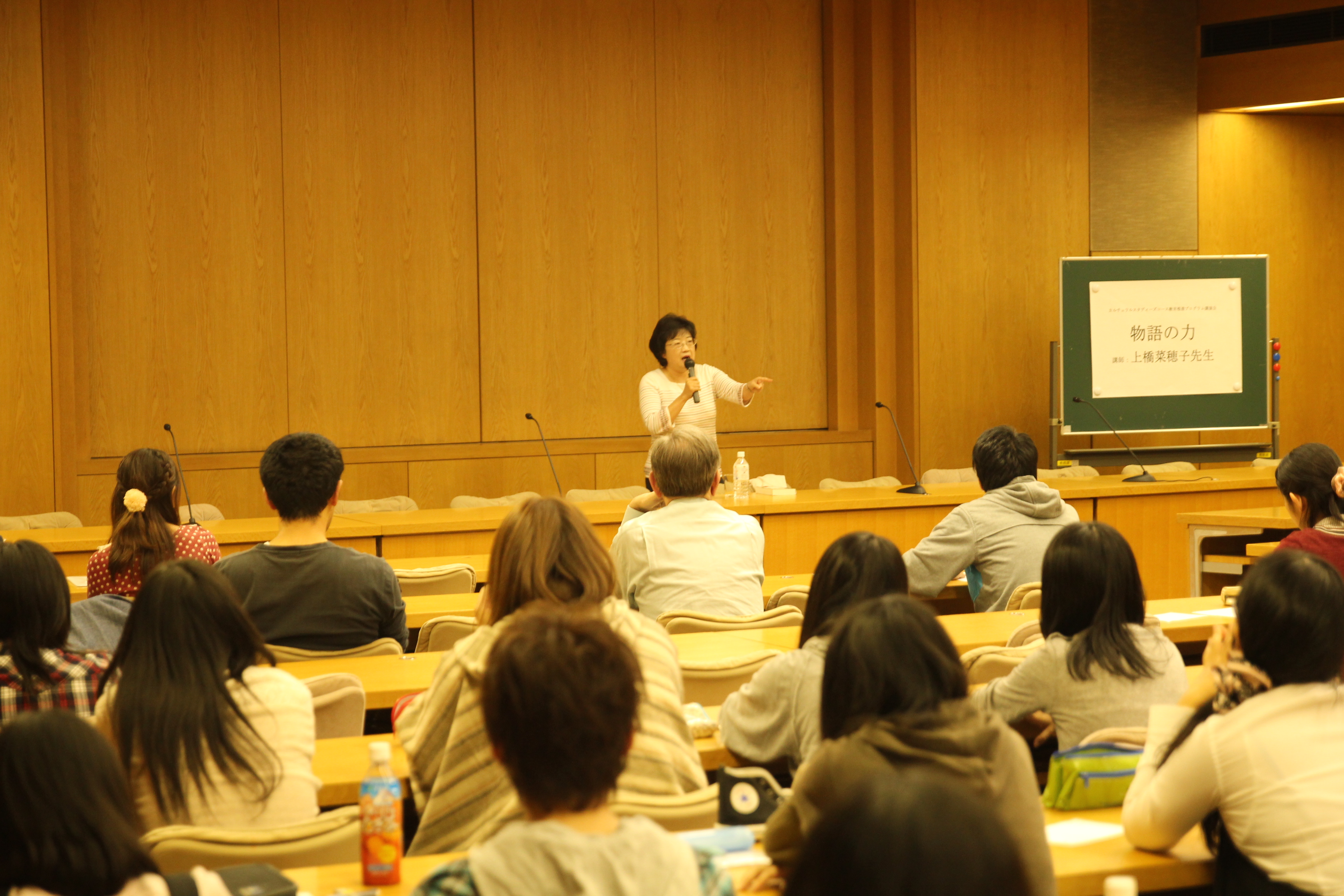先日、ファーストステップとなる講演会が行われました。講師は学生たちのあこがれの上橋菜穂子先生。演題は「物語の力」。上橋先生は「守り人シリーズ」や「獣の奏者」シリーズなど、子どもから大人まで、幅広い読者層をもつ人気のファンタジー作家です。![]()