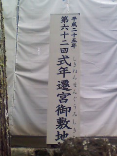 今度は下の写真を見てください。「平成二十五年 第六十二回 式年遷宮御敷地(しきねんせんぐうみしきち)」と書かれていますね。これは何でしょうか?