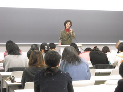 授業の後、廊下で、荒先生に質問する学生たちです。自分たちの物語を語り始めた、といっても、つまるところ同化政策の結果として英語教育を受け、高等教育を受けるチャンスを獲得した結果ではないか、つまり自分たちを搾取し迫害した者たちの言語文化に取り込まれたということではないか、という鋭い質問を荒先生は喜んで受けとめてくださり、またひとしきりのディスカッションが盛り上がりました。![]()