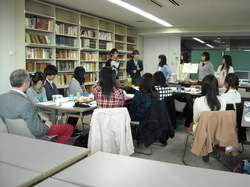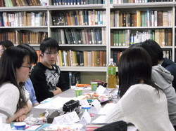 カルチュラルスタディーズコースは「議論すること」と「議論から新しいアイディアを生み出すこと」を重要視しています。さすが、AO入試を突破した人たちです。カルチュラルスタディーズコースのAO入試二次試験は「グループディスカッション」とそれに基づくエッセイでしたが、議論することに何のためらいもない様子。活発に意見を交換し、楽しい時間を過ごしました。![]()