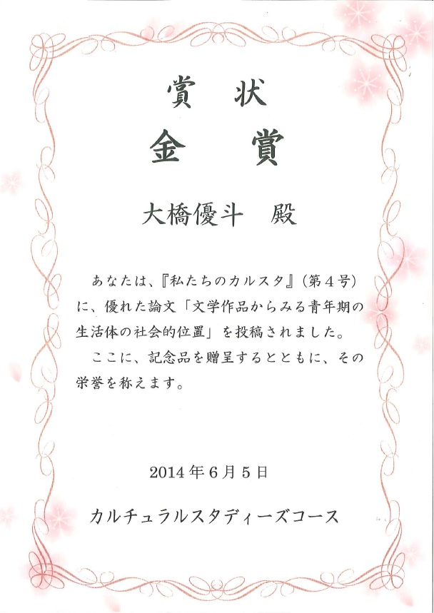 書かれたものの評価は、往々にして、評価する人によって異なります。それは、多くの賞やコンクールで、審査員の意見が食い違うことに見られます。したがって、今回賞を取った人も取れなかった人も、学生諸君の投票結果ならびに選考結果に、一喜一憂しすぎないでください。まあ、カルスタの論文集のオマケくらいに考えておいてください。