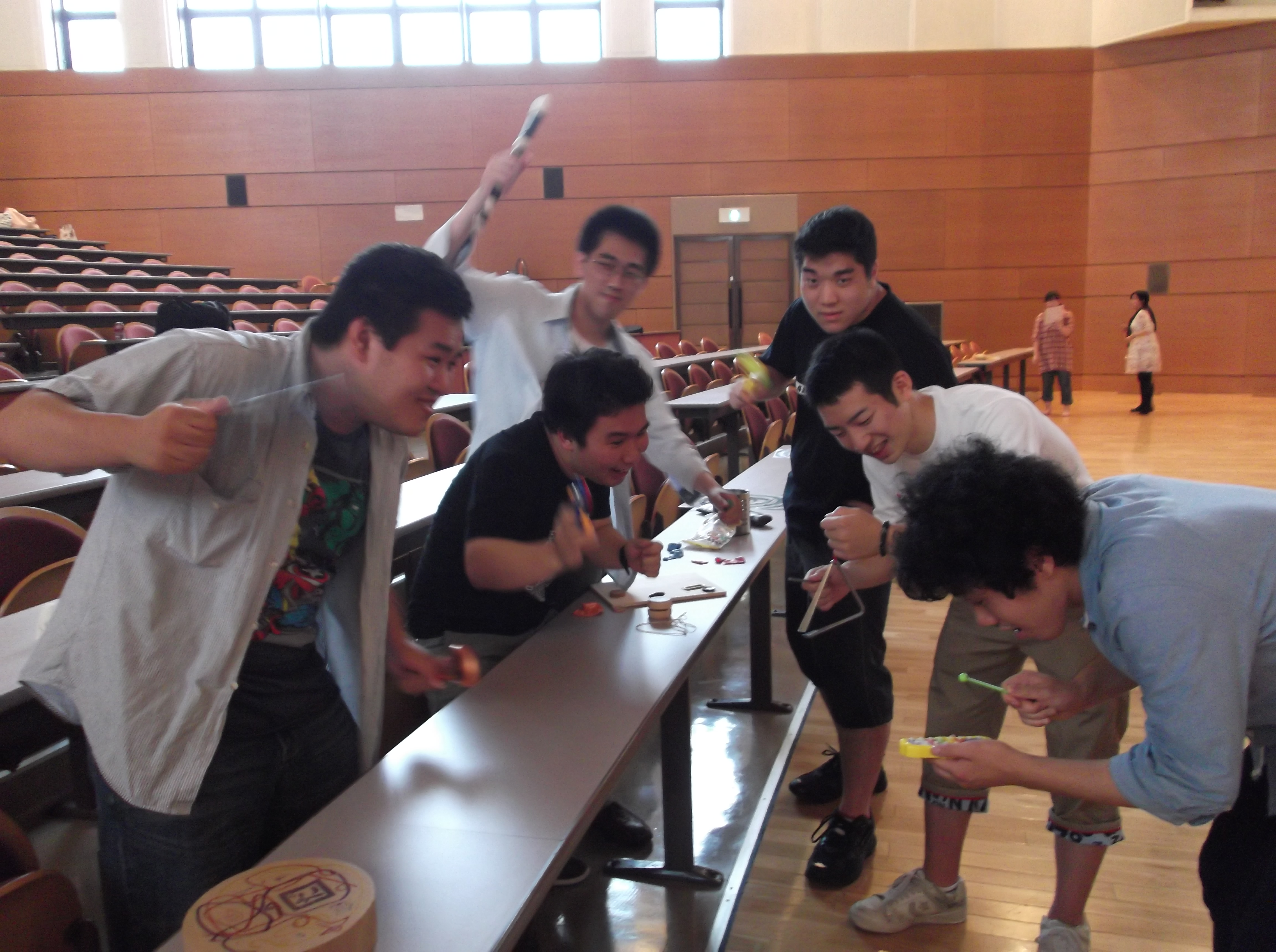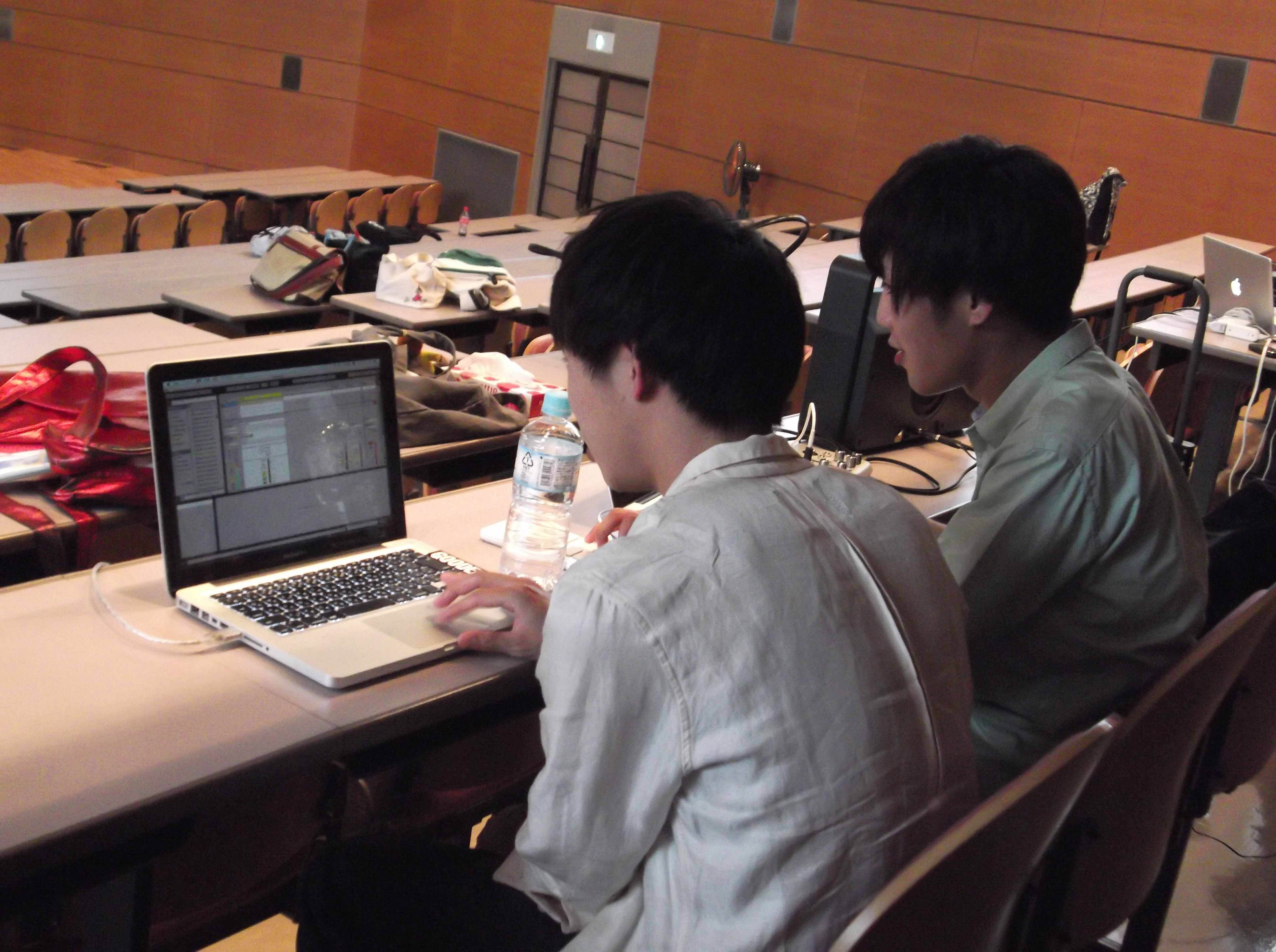 最初は戸惑っていた学生たちも、いつのまにか音い出すことに夢中になって、偶然生まれる音と音の重なりと自然に発生する人と人のコミュニケーションの心地よさに浸っていました。