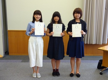 左から銀賞の佐野さん、金賞の菊地さん、銅賞の鳥海さん