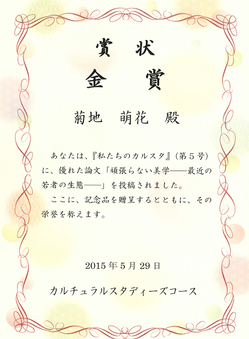 2014年度のカルスタ賞の講評は、以上で終わりとします。また来年も、素晴らしい論文集『私たちのカルスタ』が出来上がることを楽しみにしています。