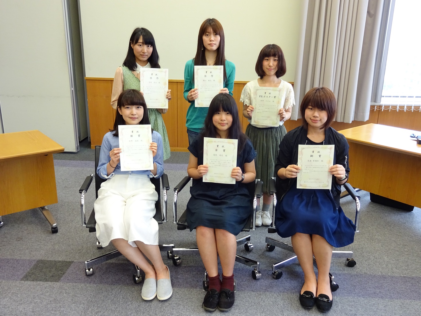 後列左から、佳作の吉崎さん、野口さん、PRポスター賞の田中さん