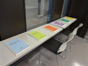 今回の鴨台祭のために学生が書いた論文、学生が自主的に行っている漫画・アニメ・ゲーム研究会「トワイライト」の活動報告書など、
