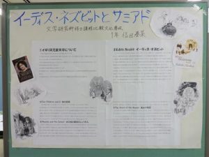 この休憩所では、カルスタの学生がゼミや授業で取り組んだ論文が展示されています。