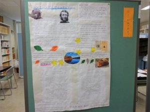 会場では学生が現在取り組んでいる研究の内容が分かりやすく解説されている他、人文スーパーゼミで使用されたレジュメ、