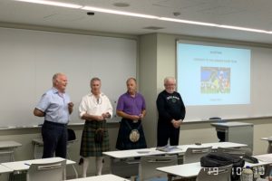 10月10日(金)の授業では、ラグビーワールドカップを観戦しに来日されているDavidさん、Graemさん、Paさん、Johnさんをお招きしました。