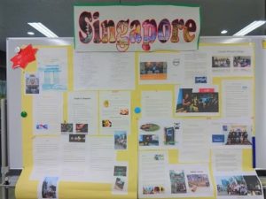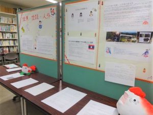 会場では学生が現在取り組んでいる研究や、シンガポール研修での様子がまとめられているほか、