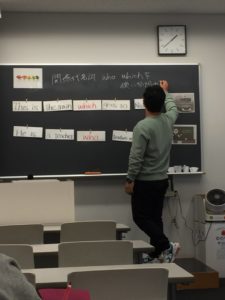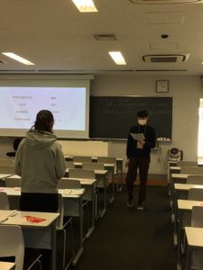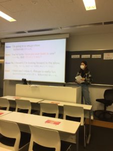3、4年生の先輩たち(英語表現・コミュニケーションコース)の模擬授業に参加させてもらうこともあります。春学期はオンラインの模擬授業を経験しました。工夫された先輩たちの授業にもいつも良い刺激をもらっています。