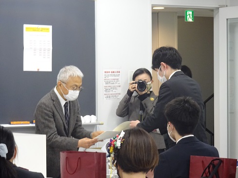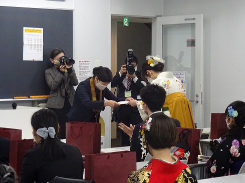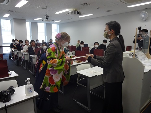 学科、コース毎の学位授与式では指導教授の先生から学位記の授与がありました。