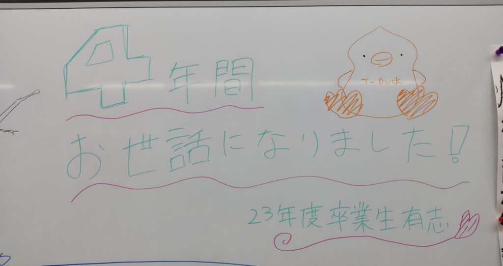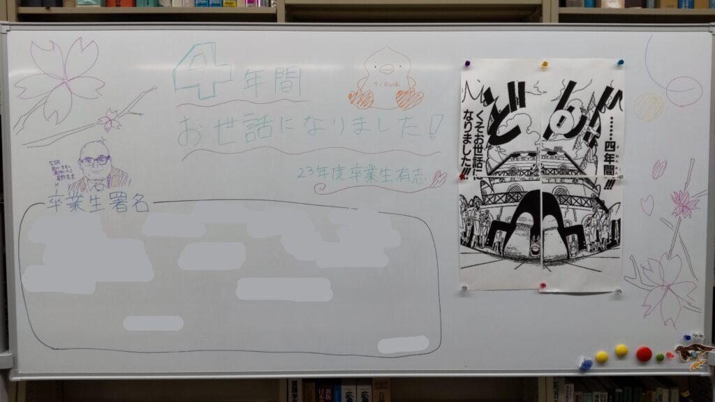 また、授与式終了後には、卒業生の有志が閲覧室にメッセージを残されていきました。