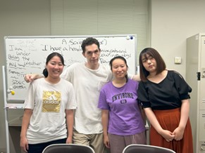 The junior and senior students in the English teacher training course enjoy Mark sensei’s English lessons every Wednesday morning. They learn everyday phrases that they can use in their English classes and practice pronunciation for reading texts as model readers. “Mistakes happen!” “Nobody’s perfect!” With warm encouragement from Mark sensei, they try hard and keep improving!