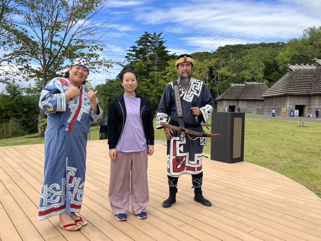 映像を通じてアイヌ民族の歴史を再確認し、アイヌ語教室では日常表現や発音を学び、様々な展示を通じて暮らしの様子を知り、古式舞踏の見学では迫力のあるパフォーマンスに圧倒されました。