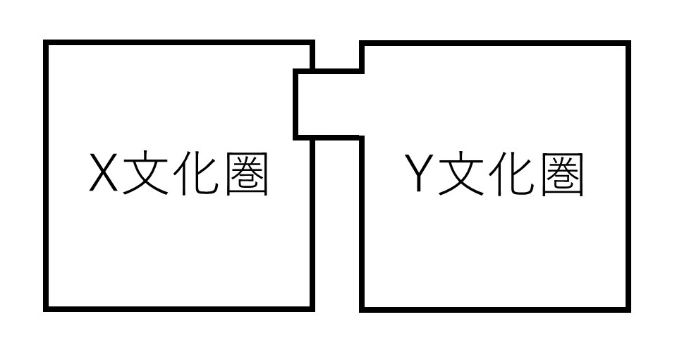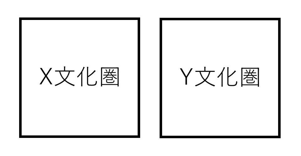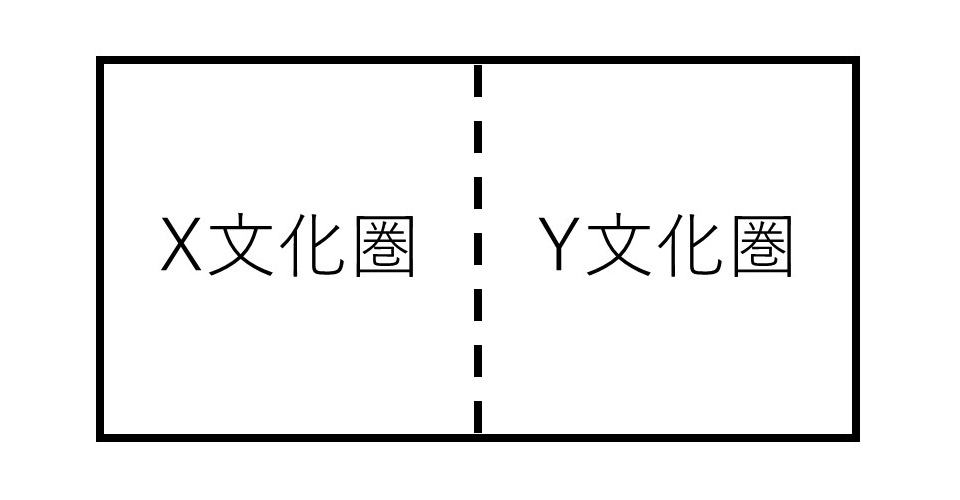 「X文化圏」と「Y文化圏」は、それぞれの言語=文化「圏」を示します。同時に、これらはそれぞれの言語=文化的準拠「枠」でもあります。