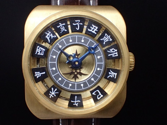 簡単にいうと、定時法では、私たちの使っているアナログの時計の文字盤にあるインデックス――「1、2、3…」「Ⅰ、Ⅱ、Ⅲ…」など、時刻や時間を読み取るために、文字盤に配置された目盛のこと――の位置/間隔は変わりません。しかしながら、江戸時代の時計(和時計)ではこのインデックス(「子、丑、寅…」)が動いてくれたのです[13]! いろいろな和時計があったので、目盛/インデックスの動かし方には複数あり一般化はできませんが、「東洋のエジソン」こと田中久重(1799-1881)は、1度ゼンマイを巻き上げると、日の長さにあわせてインデックスが1年にわたって自動的に動いてくれる「万年時計=万年自鳴鐘」を3年がかりで完成させました(嘉永4年(1851年))。これは世界に誇れる置時計です。また、現代日本の「独立時計師」菊野昌宏氏は、その機能を腕時計に落とし込みました(「和時計改」)。
