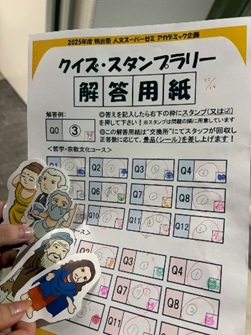 発表資料・クイズ展示の様子 クイズ・スタンプラリーと景品