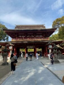 太宰府天満宮では、海外観光客を含む多くの参拝者でにぎわう境内を歩きながら、日本の信仰文化や観光地としての役割について観察しました。