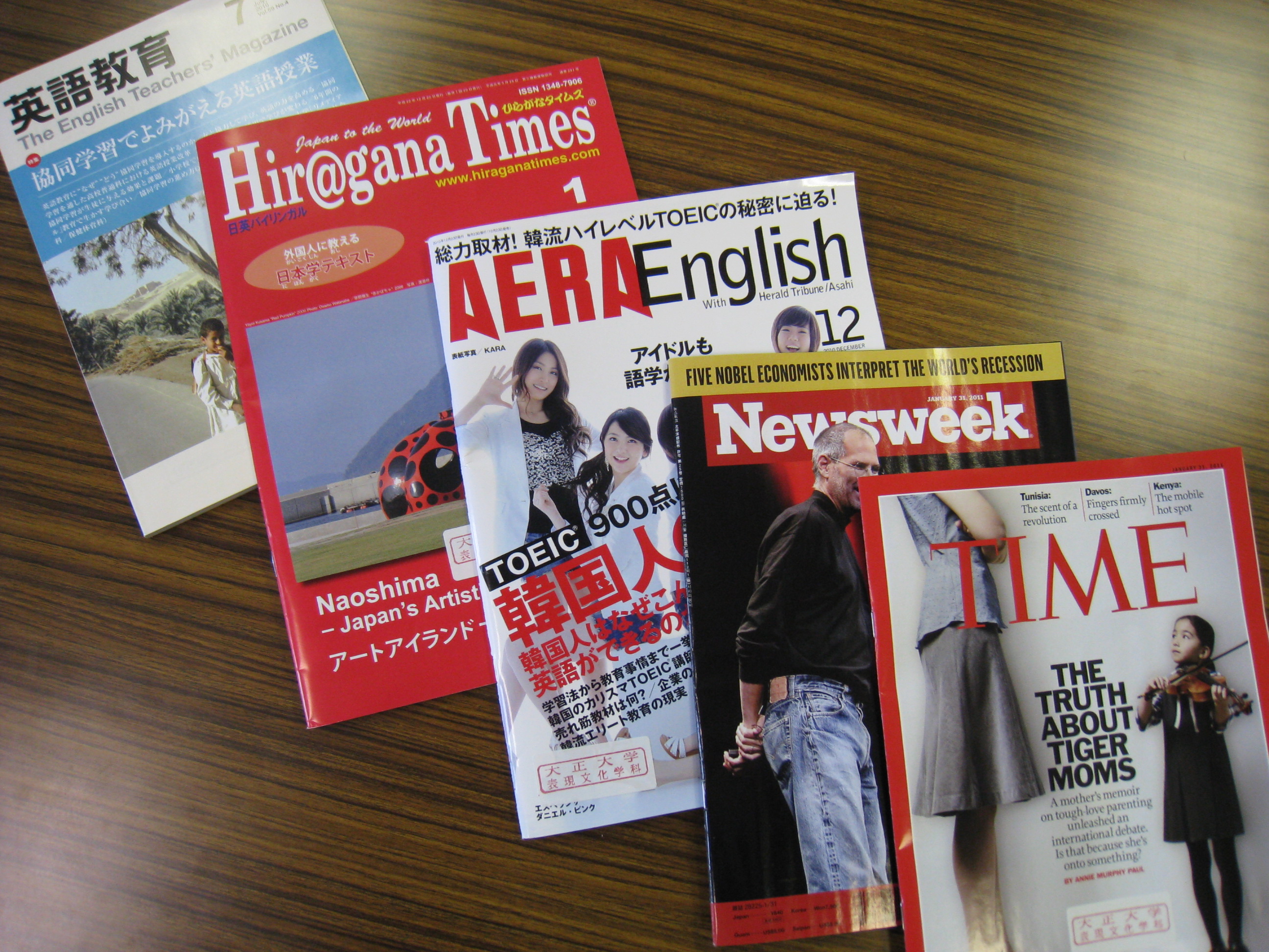 We have subcriptions to many weekly and monthly magazines. Some of them are made specifically for Japanese students who want to study English.
