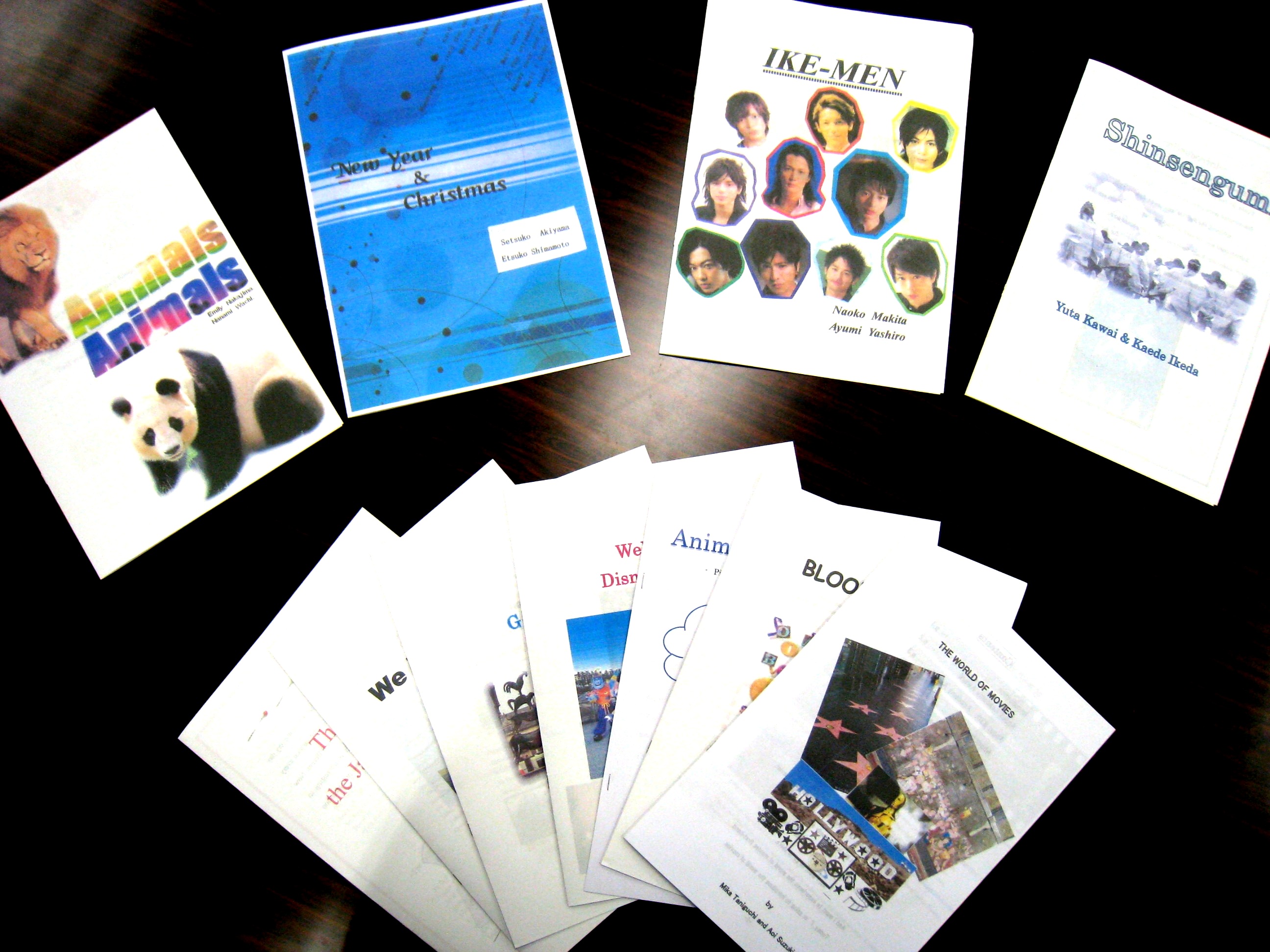 Recently, the freshmen have completed their latest work. Students were paired up and created a booklet about their topic of choice. Some booklets are about Disneyland, some about the history of Japanese fashion, and there's even one about IKE-MEN!