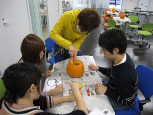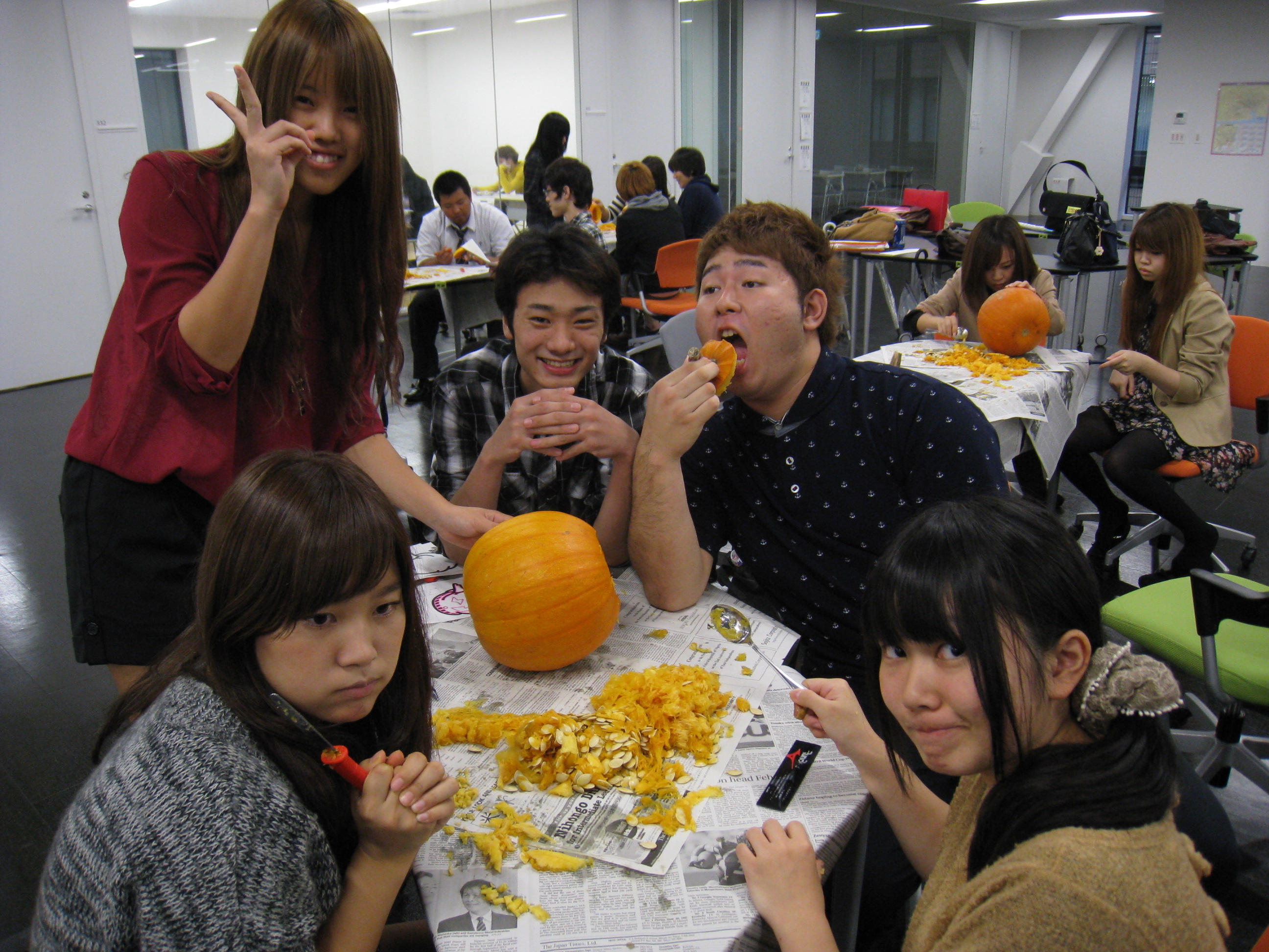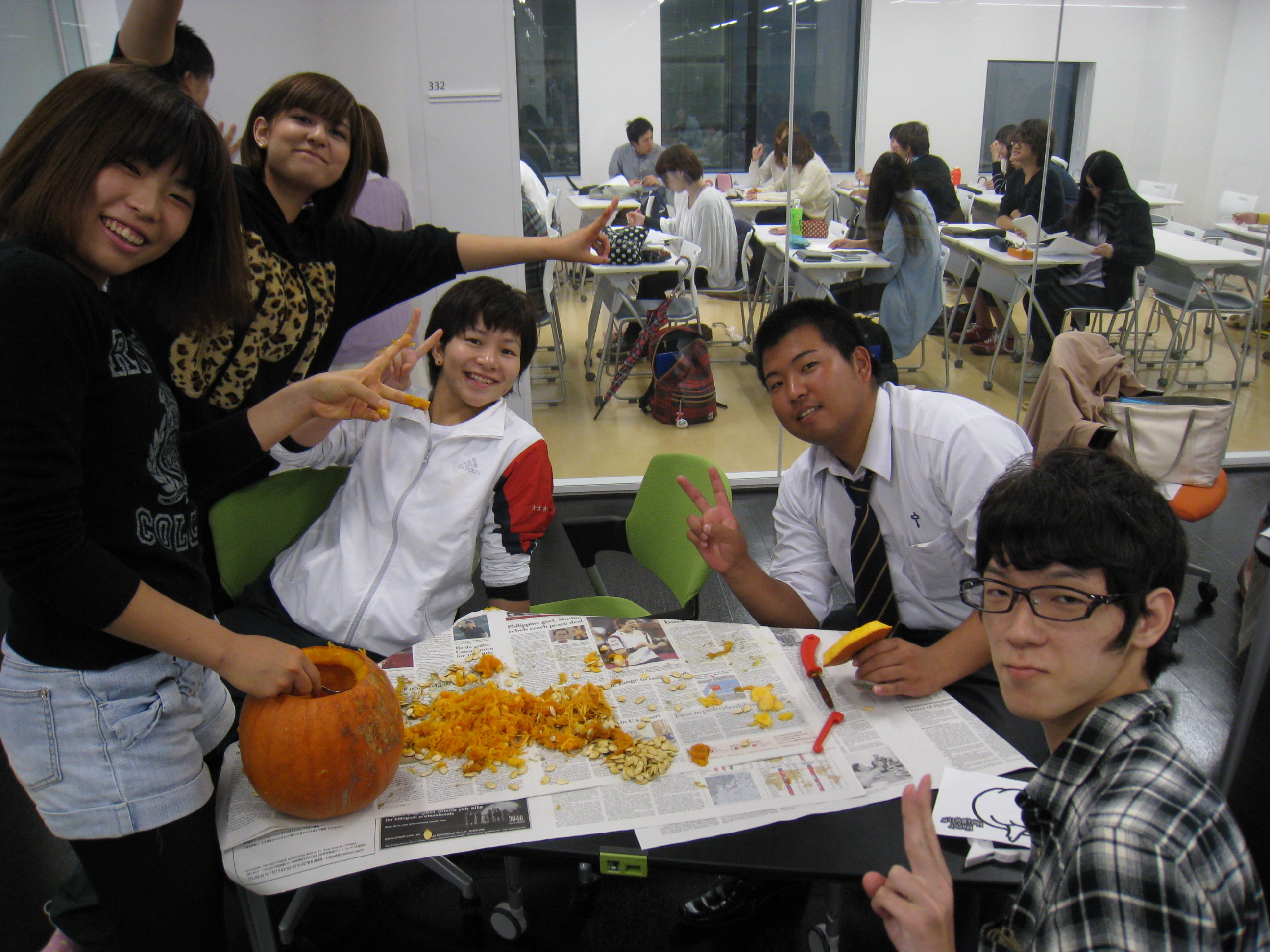 The Freshmen have just finished the annual jack-o'-lantern project.