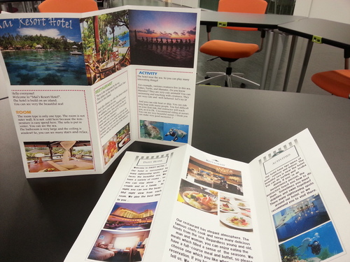 This latest project is the HOTEL BROCHURE project. Students use their imagination to create their own hotel. They also collect pictures from the internet to create restaurants and activities.