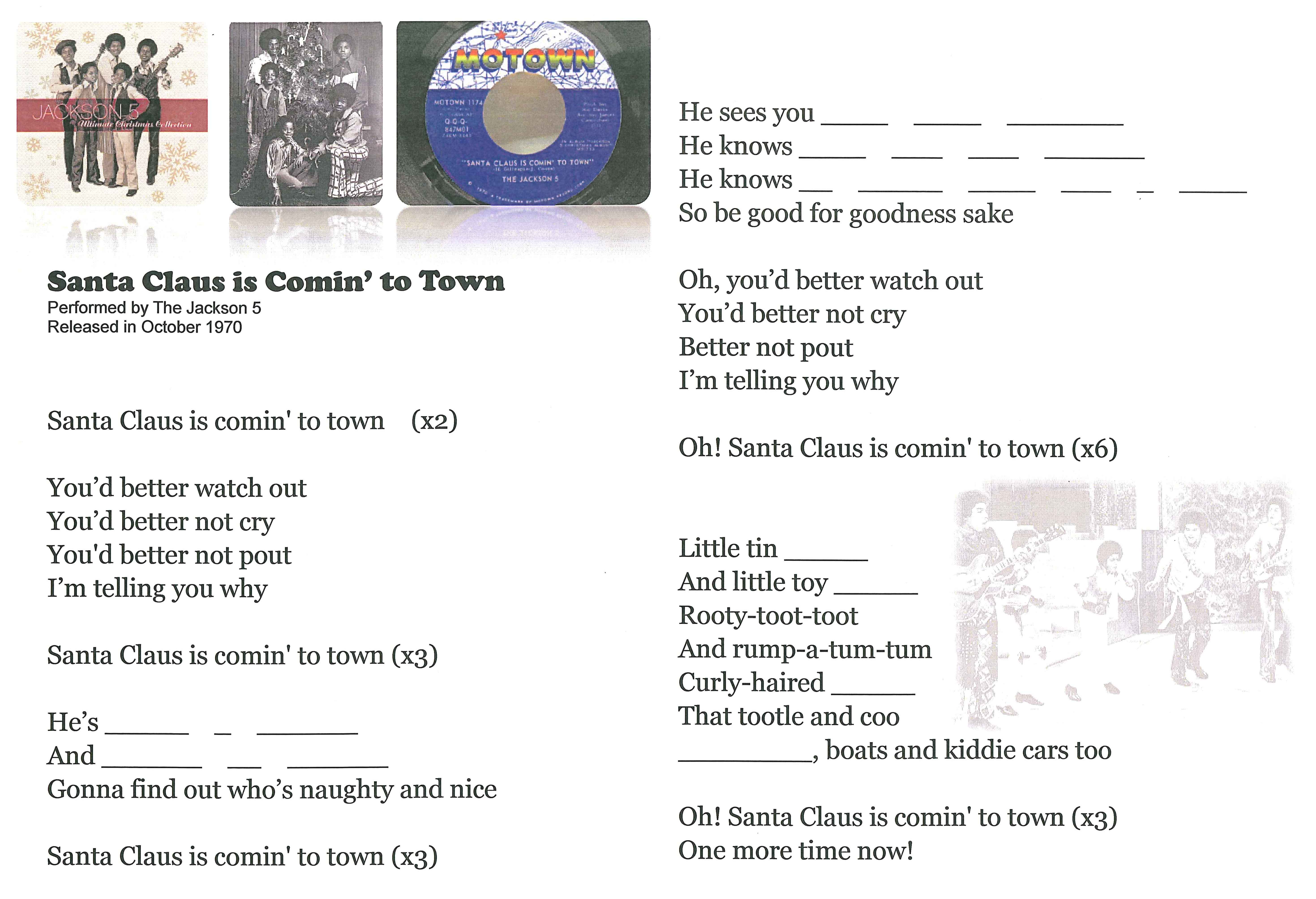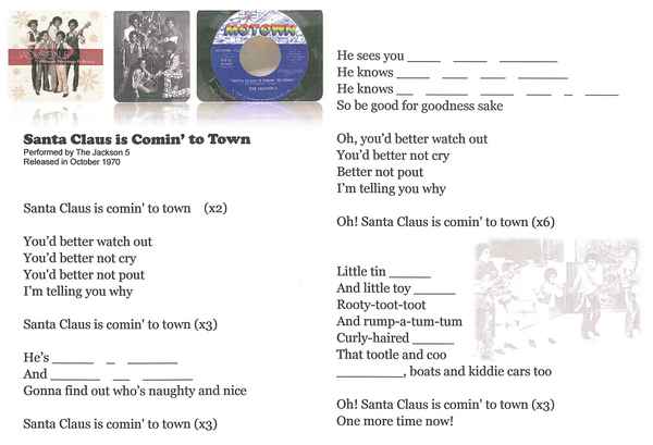 Look at the picture below. These are the lyrics to a famous Christmas song that was covered by The Jackson 5 in 1973. It was a big hit when it was released. It's still popular even today.