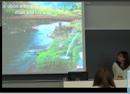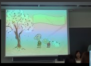 The junior English Communication students have been working on a new project. Students are given a traditional Japanese folk tale. Then, they must create a Power Point animated slide show. As they show the animation, they tell the story to their classmates.