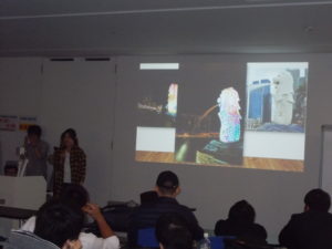 10月の4週目には、1年~3年のワークショップの授業で、英語での研修報告を行いました。
