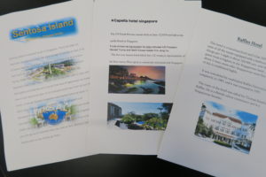 研修参加者は6月から事前研修に取組み、グループごとにシンガポールの歴史、言語、文化、習慣などについて調べ、小冊子にまとめました。