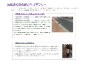 「地蔵通り商店街のバリアフリー」について記しました。老化によって視力が低下するお年寄りの見え方や、地蔵通り商店街の取り組みを中心にまとめました。