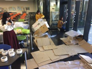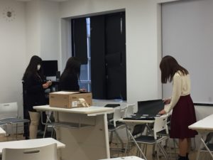 ただいま、役割ごとに分かれて会場準備を進めています。