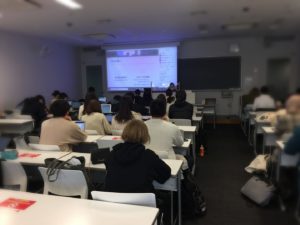 秋学期は、対面とオンラインのハイブリット型授業です。対面とオンラインの講義は円滑なコミュニケーションを図ることも大変です。発表会では、対面とオンラインの双方に音声や画面を同時に共有できる運営を考えました。