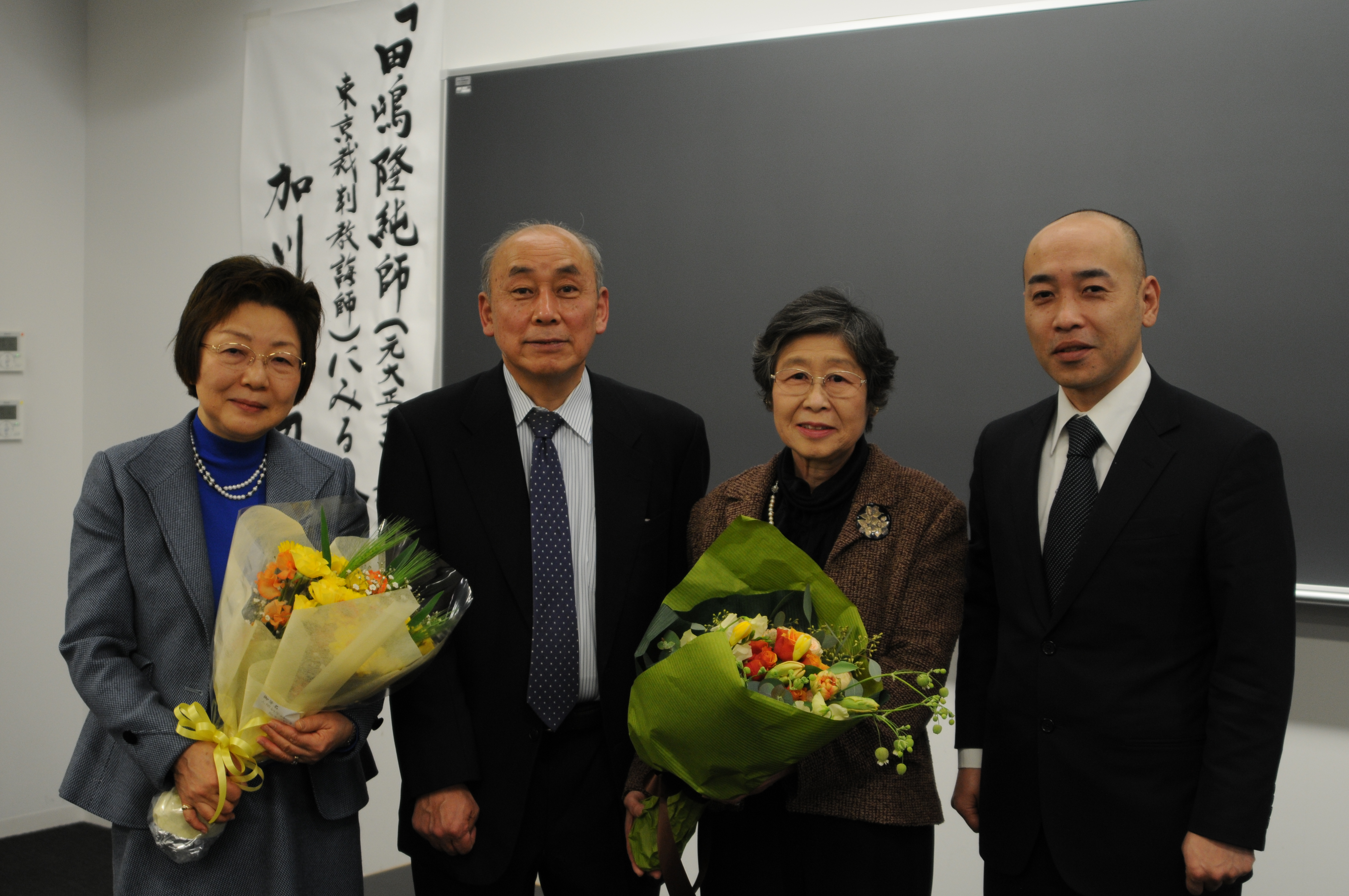 補足)仏教学科の高橋尚夫先生から、田嶋先生のご親族の方の紹介がありました。田嶋先生のご長女と貴孫の田嶋光寿さんです。光寿さんは大正大学の総合仏教研究所の研究生をされています。