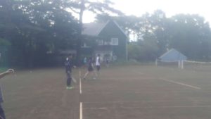 研究計画については各グループが現状と今後の計画をスライドにまとめ発表し、主として私からの質問とアドバイスを行いました。現地でもインターネットがつかえるため、指摘されたことがらに関連する資料、論文を検索できます。この3日間でも新たな資料収集が進み、計画がさらに具体化するなどブラッシュアップすることができました。ゼミの親睦という第2の目的については3日間寝食をともにするわけですから、お互いの「素」の部分をみることができて、きっとよい時間が過ごせたのではないかと思います。今年は14名(事情により12名参加)という大人数でしたので2日目の午後に行ったテニスも盛り上がりました(優勝ペアには私からジュースのプレゼント、ショボくてすみません)。2年前は1度も富士山が姿を見せてくれなかったのですが、今年は天気に恵まれ、間近にその雄大な姿を拝むことができました。