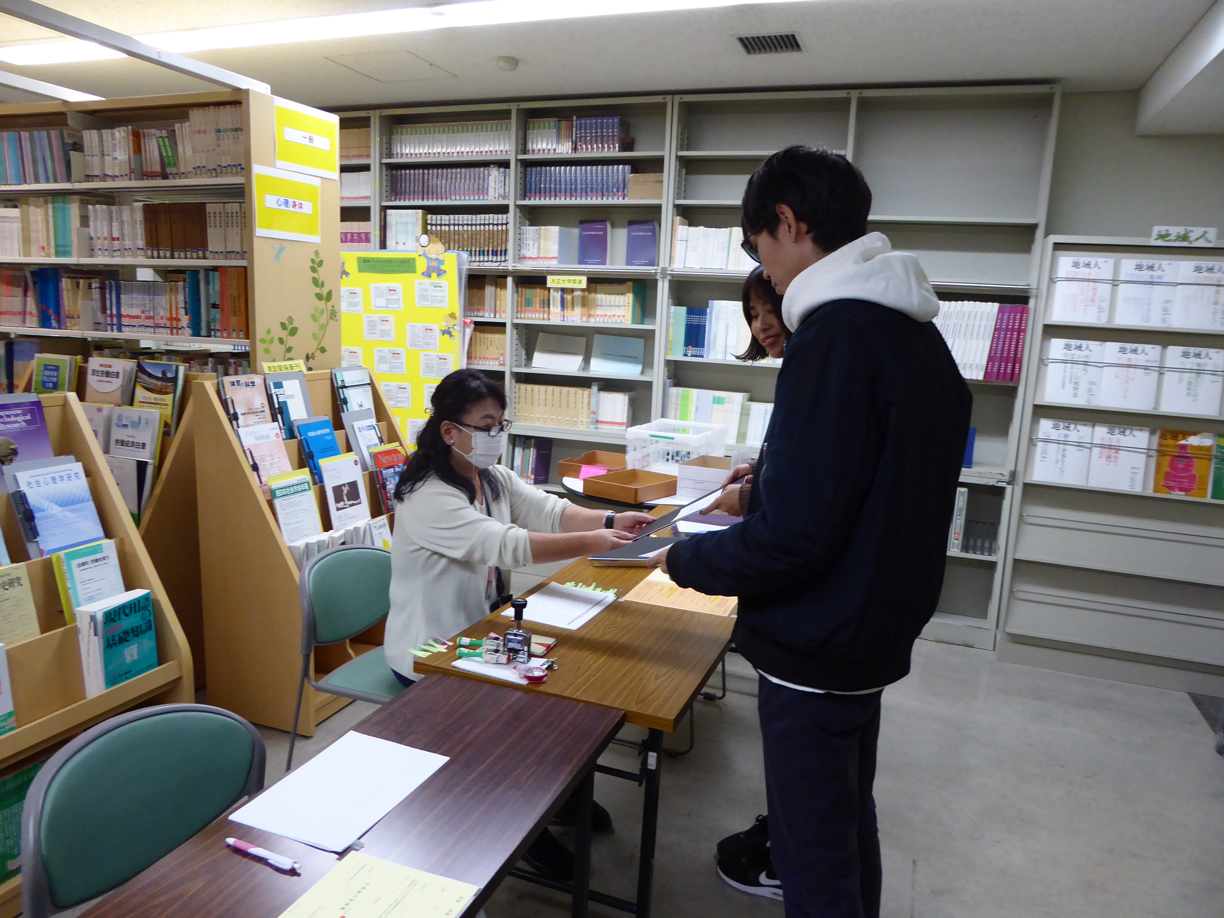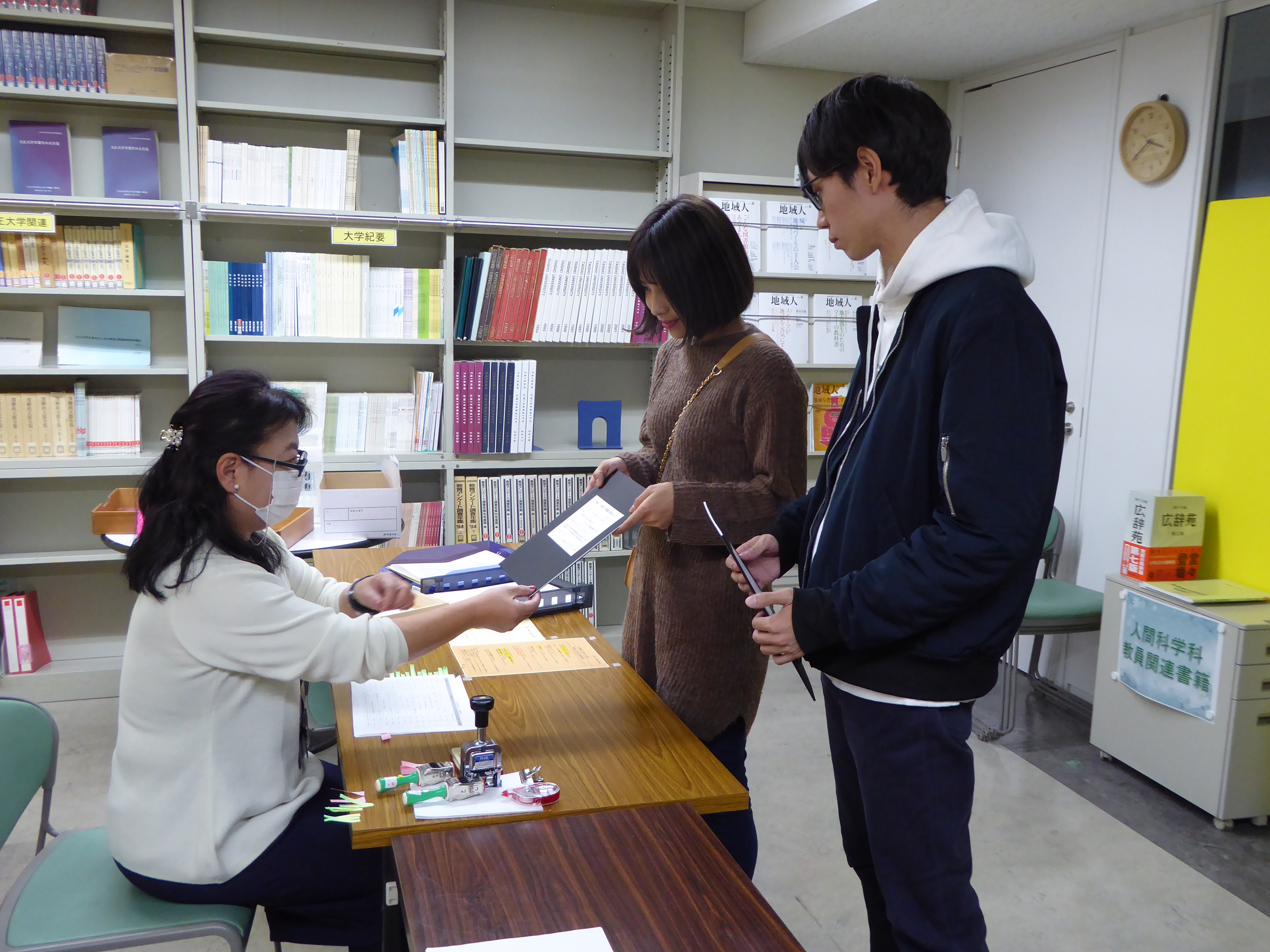写真のように、学科事務室で論文のページ数や文字数、行数など体裁の確認をしてOKであれば提出できます(14日15:49撮影)。