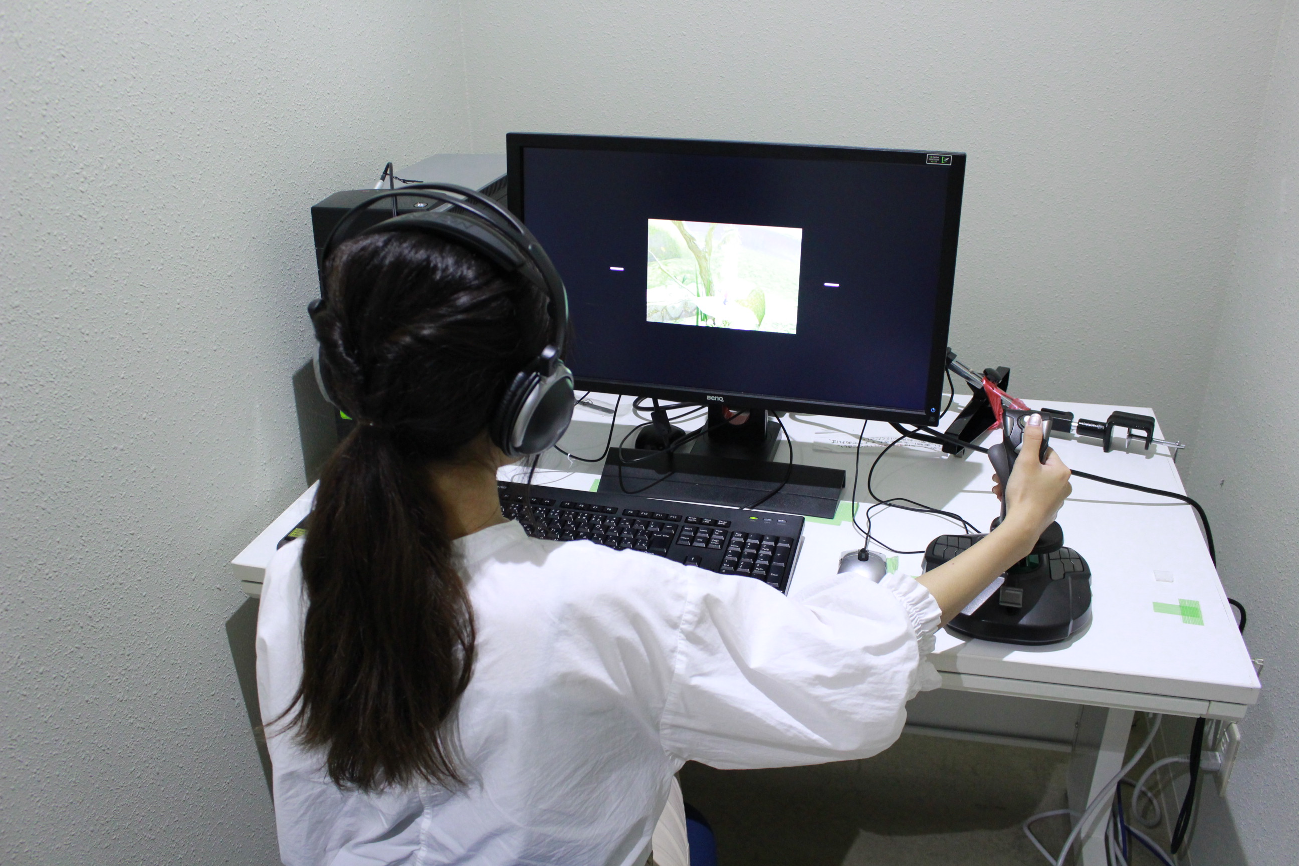 人間科学科では、実際に心やからだに関する仮説を検証したり、特性を解析したりすることも重視しています。モノや人物に対する印象や記憶を計測したり、錯覚が起きる条件を調べたり、様々な条件下でストレスレベルを調べたり、心拍や筋活動、眼球運動、脳活動を計測したりなど、それぞれの用途に適した実験室が整備されています。きっかけは素朴な疑問でも、仮説や方法をだんだん洗練させながら実験的検証を進め、実際のデータをもとに、心やからだの仕組みや特性を示します。