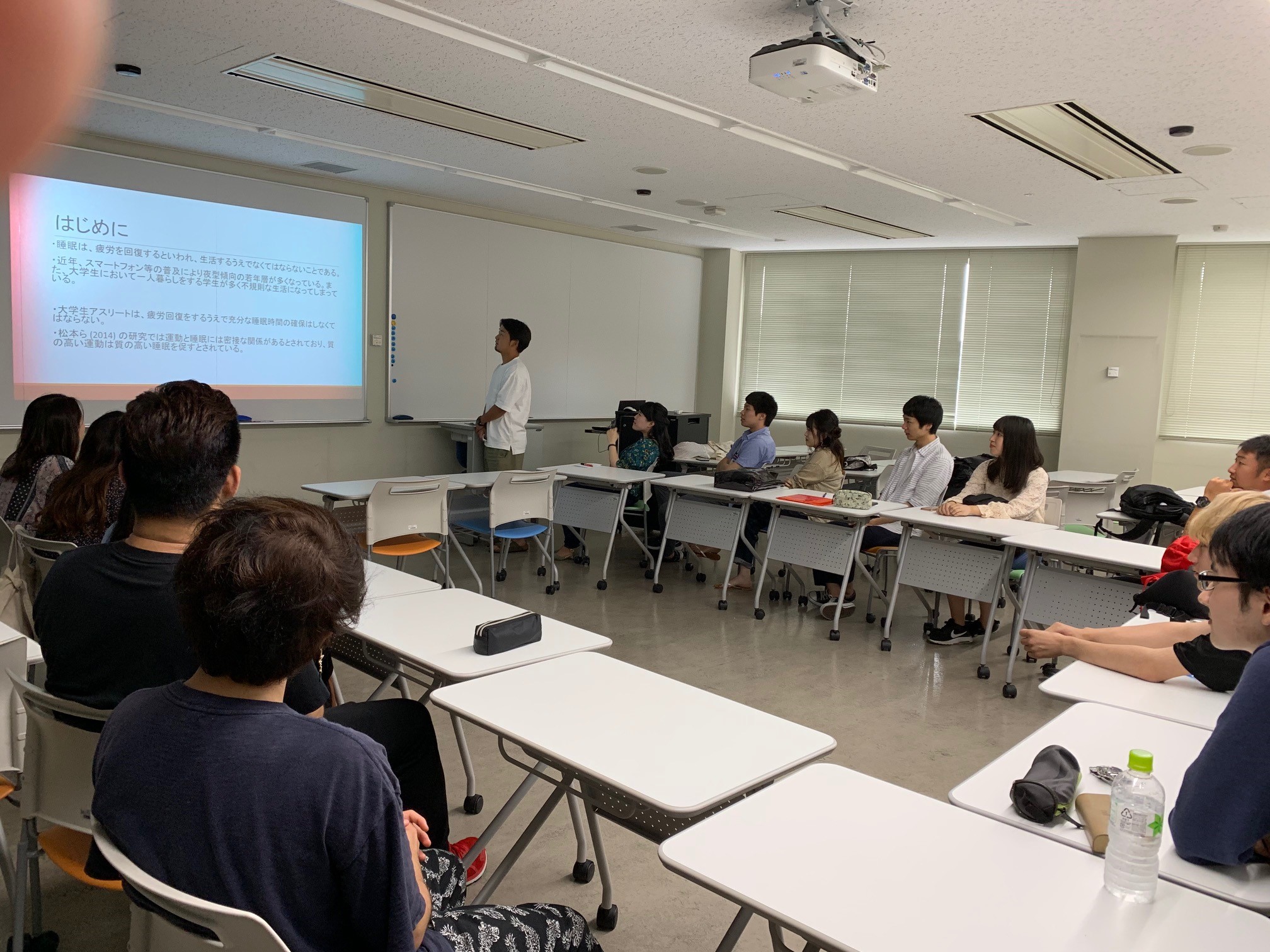 この日は中間報告ですので、研究計画や予備実験・予備調査の結果報告などそれぞれの状況について報告しました。3年のゼミ生も授業の合間でほぼ全員が参加しました。