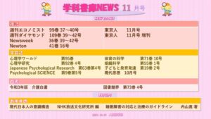 そこで、どのような書籍や雑誌があるのか「書庫ニュース」としてご紹介していきます。