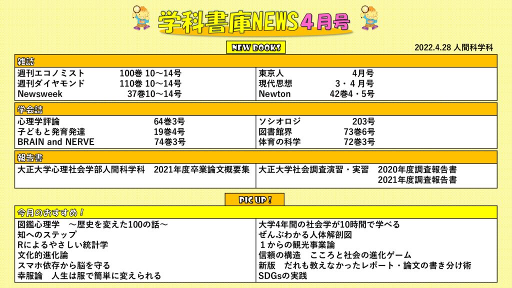 学科書庫NEWS 4月号をお届けします。 目に鮮やかな新緑の季節となりました。 いよいよ明日からゴールデンウィークです。