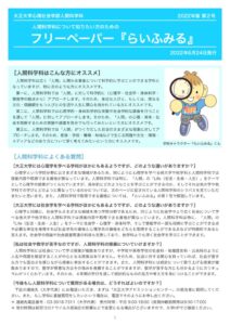 人間科学科では、学科について紹介するフリーペーパー『らいふみる』を発行しております。