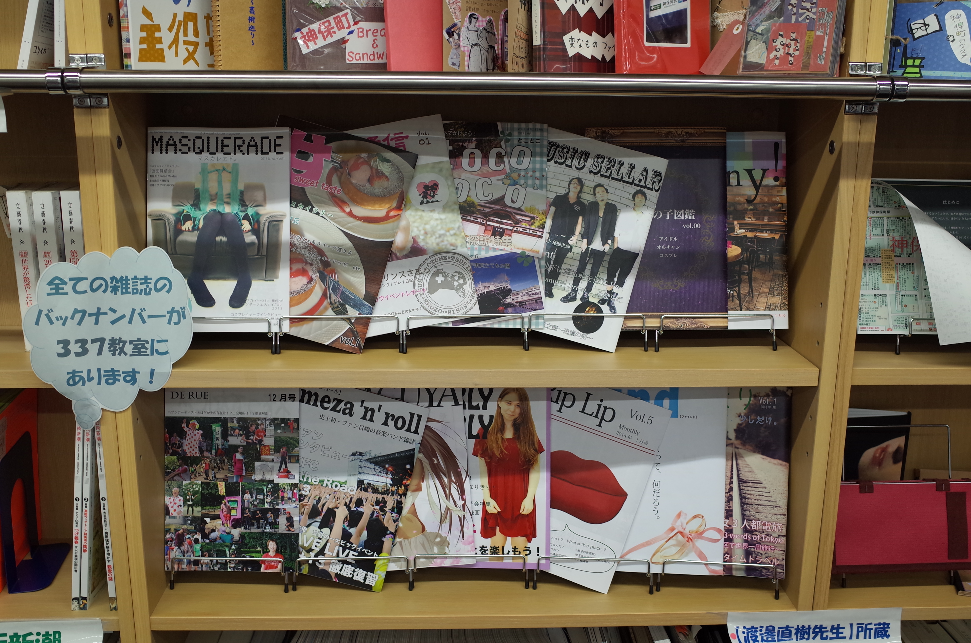 三号館3階のエレベーター正面の本棚スペースに、H25年度ワークショップⅥで制作した雑誌の公開を始めました。