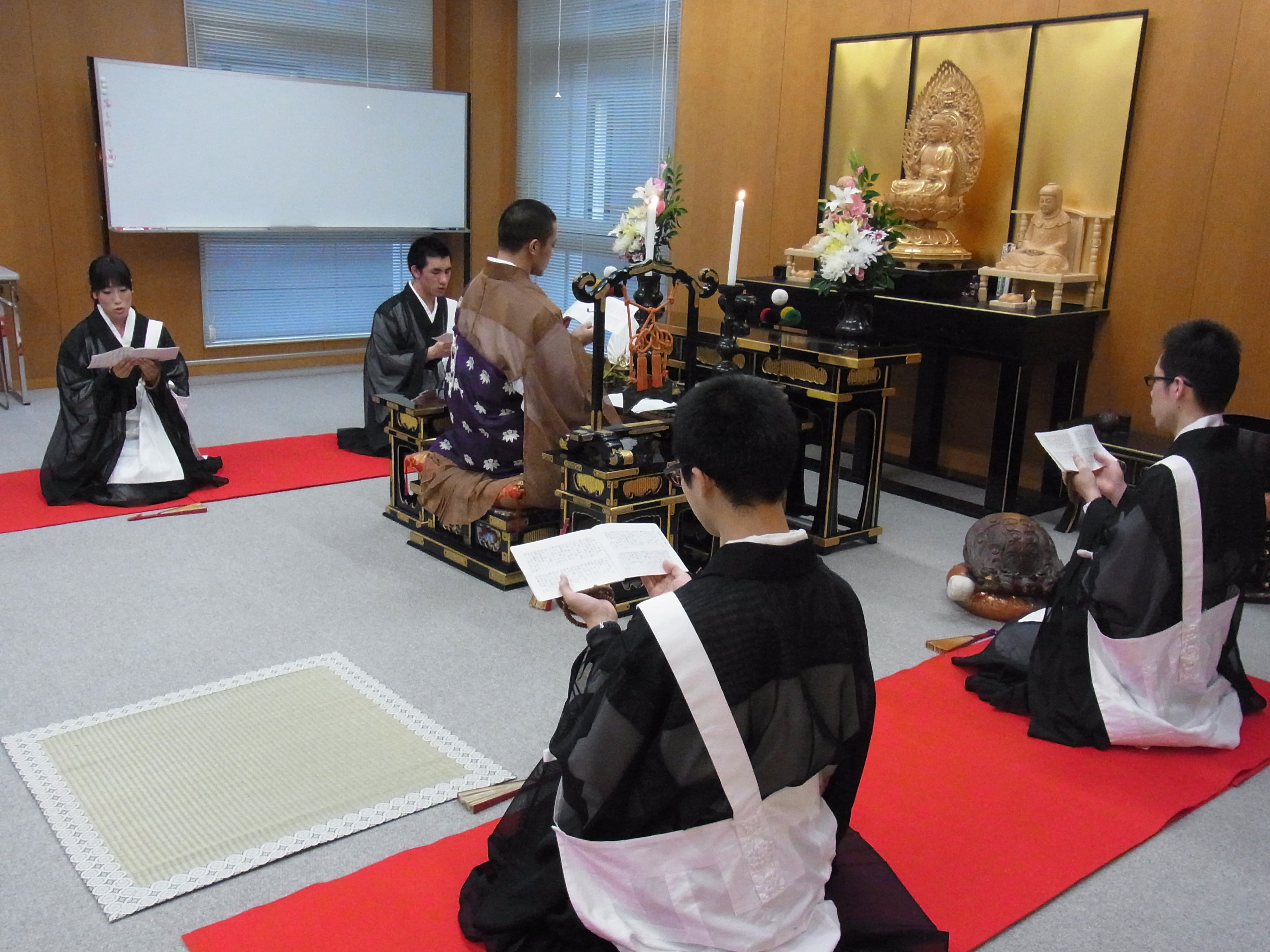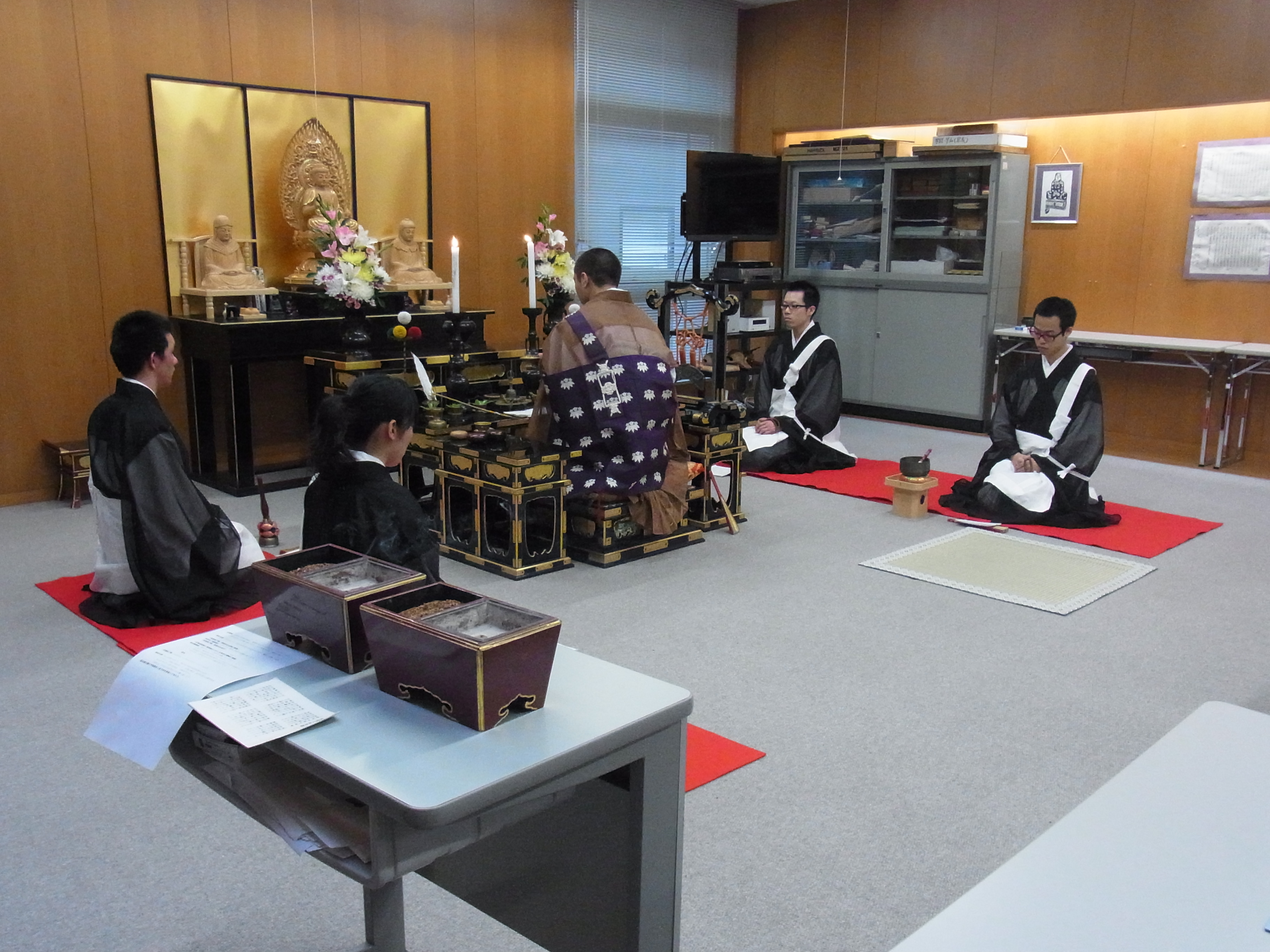 今回、衣を着けてお勤めしたのは、天台学の大学院生と学部3年生4名です。