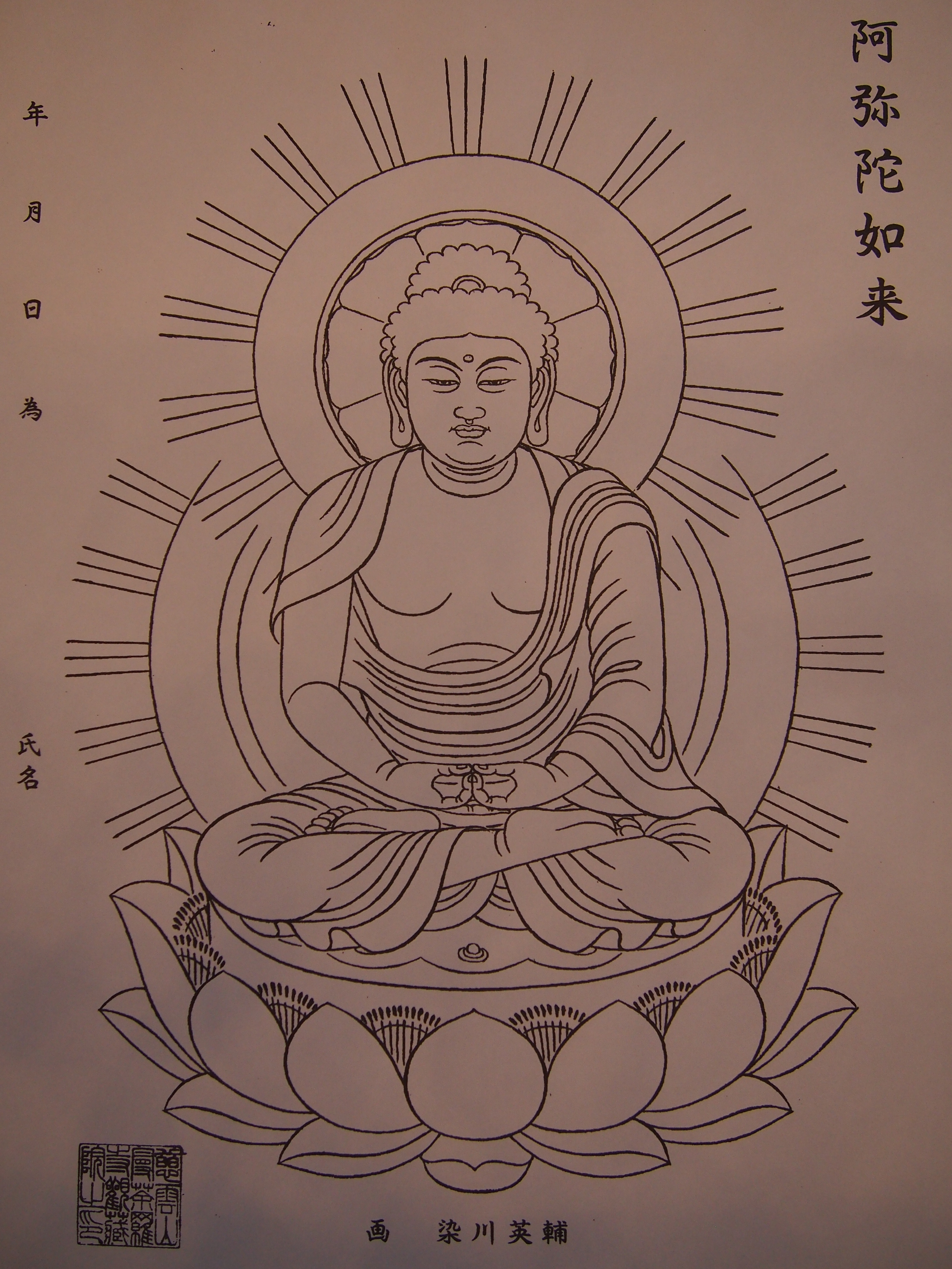 一週目は阿弥陀如来を、二週目は聖観音菩薩を写しました。因みに阿弥陀如来は戌亥歳の守り本尊としても有名です。
