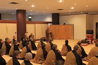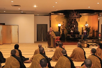 普段、学内の専用道場で法儀の講義をしておりますが、授業時間内に設定されているため、制限もあります。ここではゆっくりと指導を頂戴することができます。