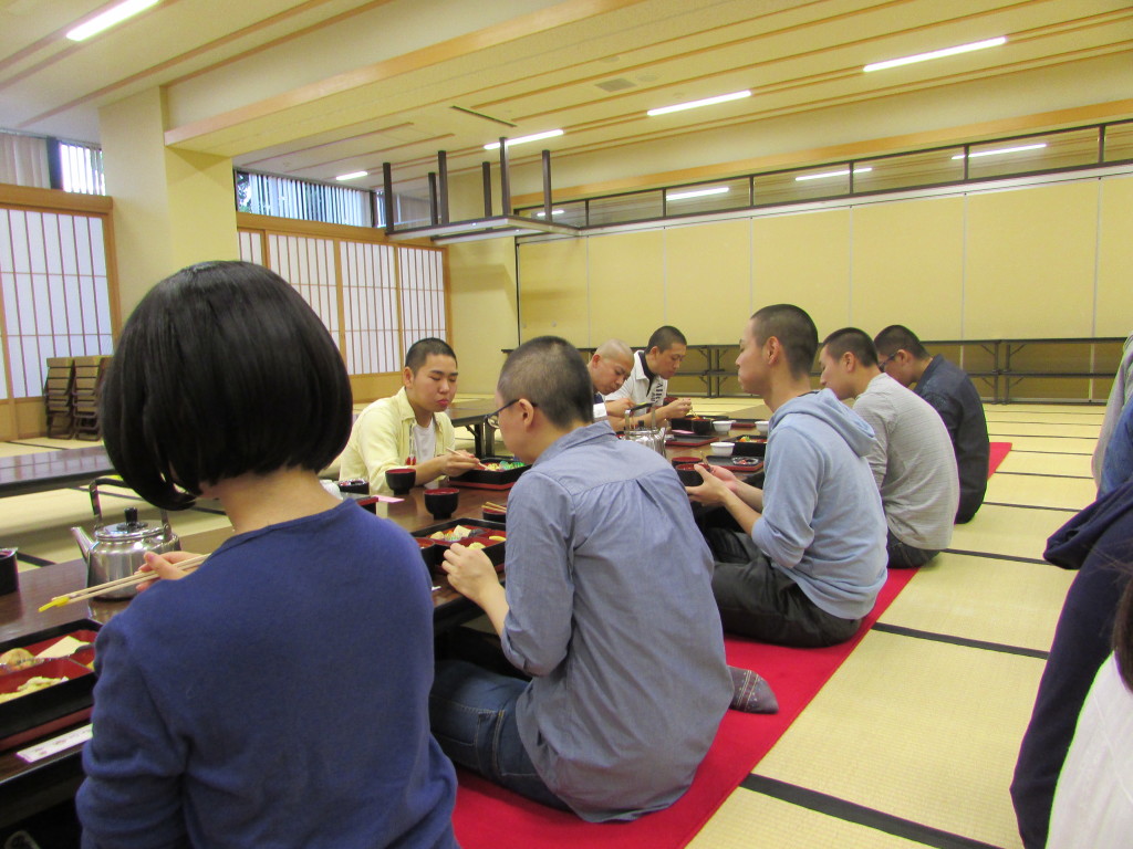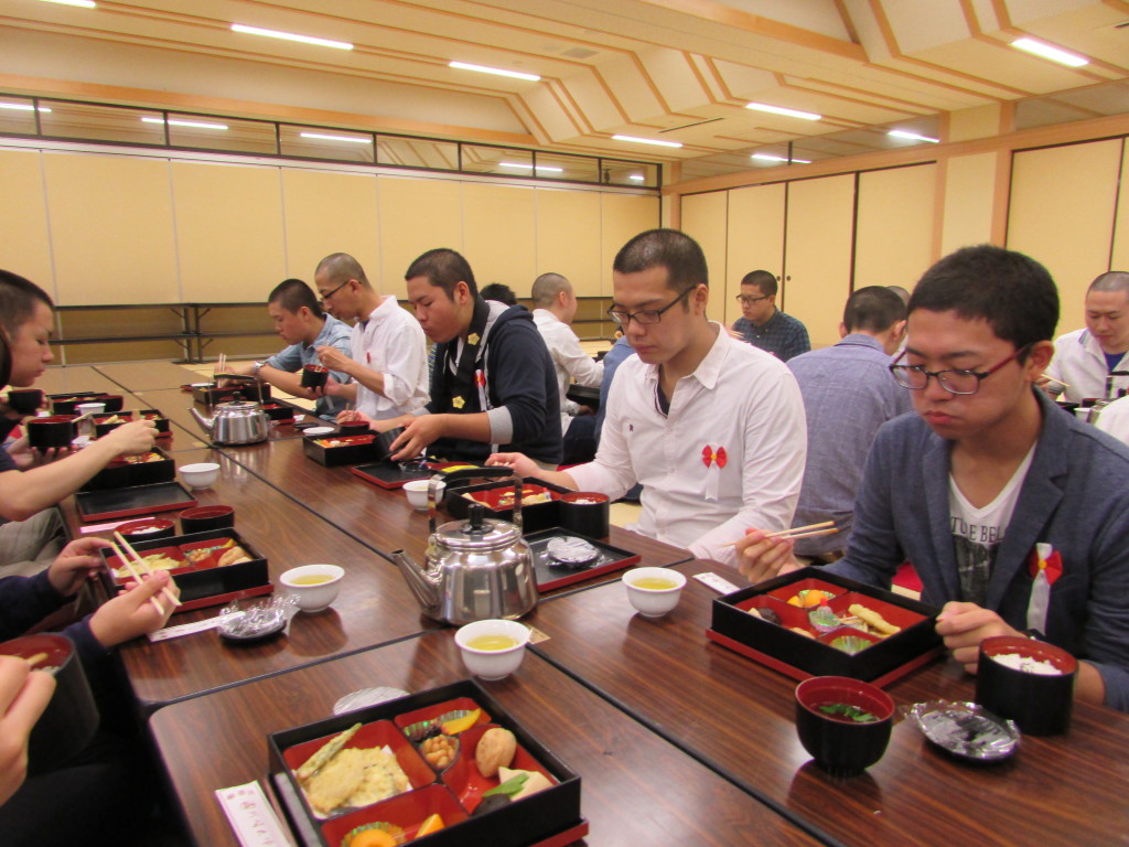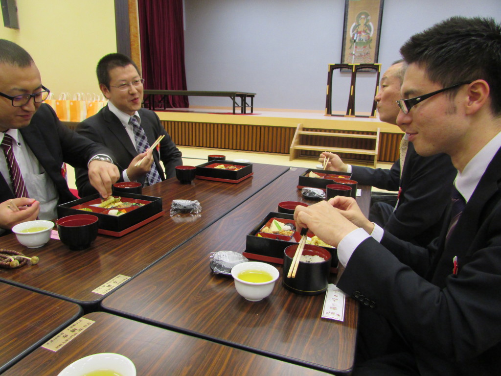 法要終了後、お昼の接待をいただき、境内の案内をしていただきました。数々の仏塔や建築物をみてスケールの大きさを目の当たりにいたしました。学生たちも、説明を熱心に聞き入っておりました。