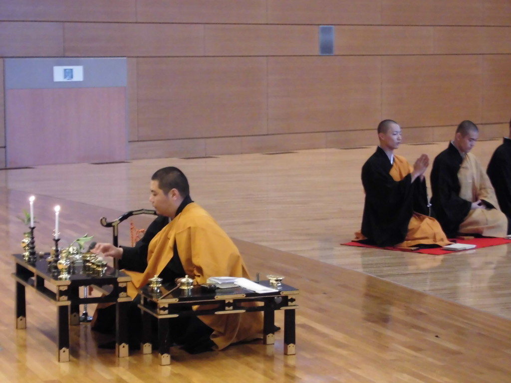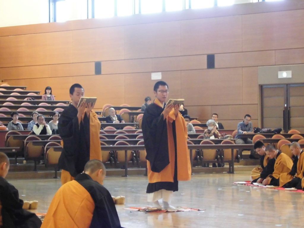 大学行事のデビュー戦ッ!!…ということもあり、少々緊張気味でしたが、声も大きく音の取り方も上手く心に響く声明を唱えてくれました!!