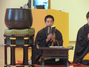 智山派では古来より「智山声明長谷論義」と言われるように、声明に力をいれておりました。そのためこの「如来寿量品」の読誦にも独特な節回し、「博士」といわれるものが付されています。これを学生皆でお唱えするのを聞くと、なんともいえない情緒あふれる雰囲気に酔いしれてしまいます。まだご覧になられたいない方がおりました、是非機会がありました来年も行う予定ですので、ご覧頂けたら幸いです。