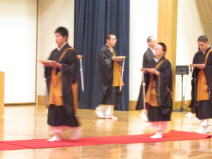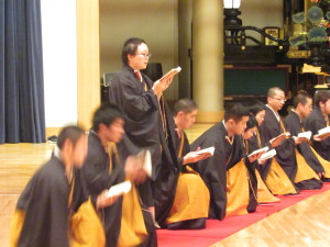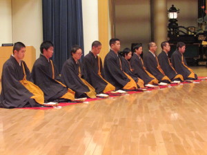 リハーサルでは一年生皆、顔が固く、緊張からか声が普段より出ていないようでした。ですが本番ではとても入学した間もない学生たちが勤修したとは思えないほどの出来栄えに感動いたしました。無駄な所作や間も一切無く、スムーズに進めされており、自分の学生時代の時よりも上手いのではと驚くほどです。ほめすぎのように思えるかもしれませんが正直な感想です。